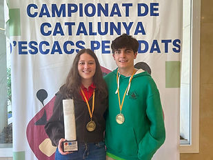 Gràcies a les seves excel·lents actuacions a la Lliga Catalana, la Júlia Pinyol i Llorà ha aconseguit el títol de WFM (Woman FIDE Master), i l’Albert Fernàndez i Climent ha obtingut el títol de CM (Candidate Master).